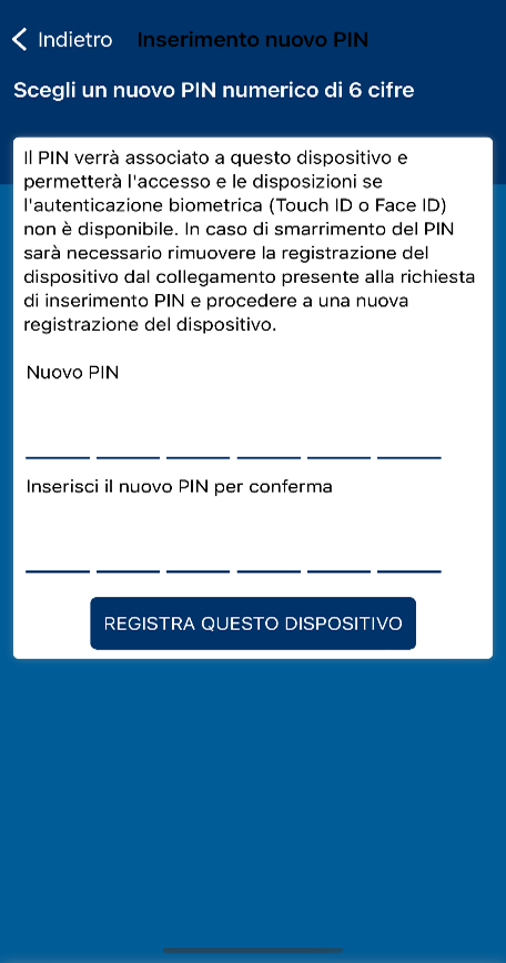 Una volta che il dispositivo è stato registrato, ogni operazione dispositiva deve essere autorizzata tramite l’App inserendo il codice PIN scelto in fase di registrazione del dispositivo.