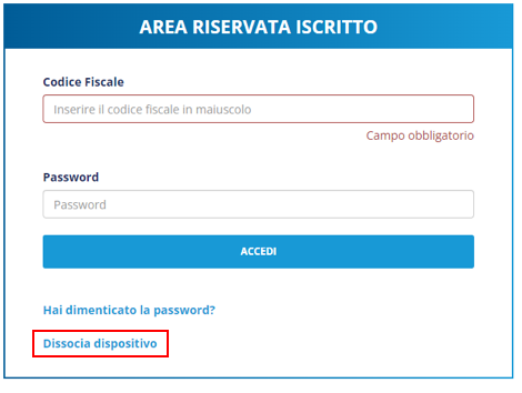 Se hai già associato il dispositivo e lo hai ancora a disposizione, puoi dissociarlo accedendo alla tua Area Riservata.